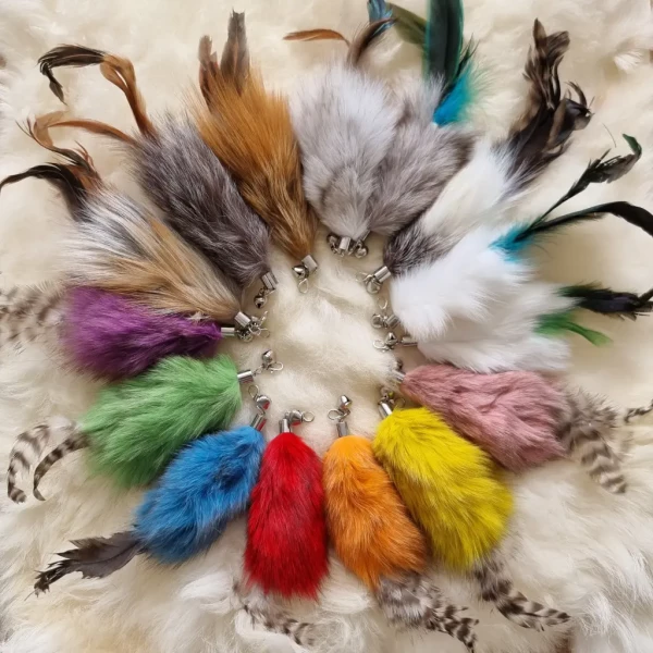 Ontdek het plezier van natuurlijk spelen met onze kattenhengel hanger. Vakkundig vervaardigd met echte konijnenvacht en veren. Deze kattenhengel hanger van konijnenvacht en veren is ontworpen om de natuurlijke jachtinstincten van je kat te stimuleren en te voldoen aan hun speelbehoeften.