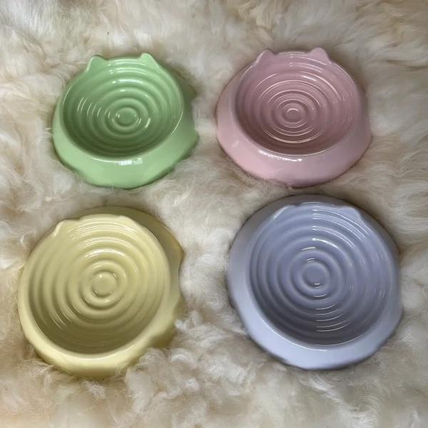 Dobby&Draco mochten deze keramische voerbakjes uittesten. Deze zijn zeker groot genoeg voor hun portie natvoer. De vorm is leuk, het gaat wat dieper in, zo kunnen ze mooi rondgaan met hun hoofdje tijdens het eten. De fijne ribbels helpen inderdaad tegen het morsen over de rand, ze kunnen proper uit hun bakje eten.